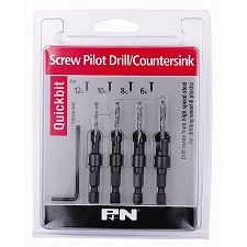 P&N Quickbit Drill / Countersinks are designed to drill screw pilot hole and countersink in one action. Suitable for drilling timber and plastic. Features 1/4" hex shank suits quick change adaptors Carbon steel countersink for general use in timber and plastic 82° Countersink Angle Made from M2 High Speed Steel (HSS) offering the best combination of strength, heat & wear resistance Includes Sizes: 3/32, 7/64, 1/8, 9/64 + Allen Key