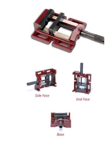 The new Dawn Drill Press Vices are versatile and sturdy and features the quality you have come to expect rom DAWN. They are available as a standard model or as a 3 way mounting model. Features and Benefits: - Manufactured from graded cast iron for reliability - Precision ground base and vice bed enables smooth lateral movement of the jaw - The fixed vice jaw comes with 3 longitudinal and 1 transversal prism which allows firm gripping of round objects both horizontally and vertically - A special seat in the jaws facilitates clamping of fl at work pieces - Spindle (screw) moves inside the hollow hand grip which allows the vice to be tightened - Elognated clamping slots enable rapid adjustment of the vice on the work table which saves times Applications: Specifically designed for drill stands, bench drills and drill presses. Comapct and low profile design makes them suitable for a multitude of metal working and woodworking applications.