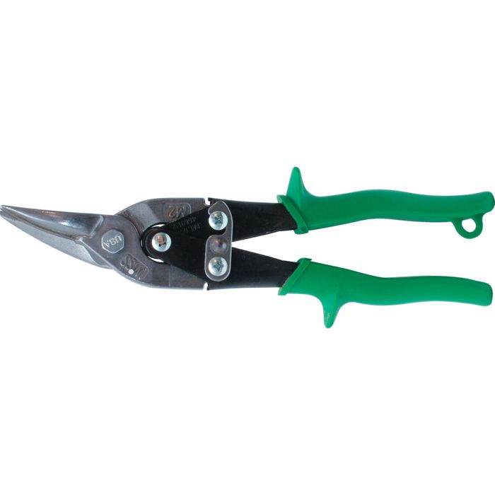 Description Left Hand or Right Hand Cut Cut from tight curve to straight. Non-slip serrated jaws are made of wear-resistant molybdenum steel with a compound lever action to provide extra strength. Cuts low carbon cold rolled steel. Self-opening action for fast, effortless feed, with a built in convenient, protective safety latch.