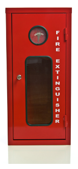 Description This high quality metal powder coated fire extinguisher cabinet is designed to protect your fire extinguishers from the environment and reduce the opportunity for intentional misuse and theft. The cabinet features a break glass window with key and 003 lock to allow access for servicing and access for the fire brigade.