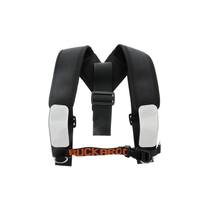 Complies with AS/NZS 1906:4:2010 Reflective materials Shoulder Braces designed to fit our range of tool belts that allows for better distribution of weight and relieves some of the strain that can affect the lower lumber. This is achieved through the weight being transferred to the wearers shoulders as opposed to back allowing for even greater support over extended periods. Made from premium Australian Made woven webbing in a premium black colour and featuring reflective tape, Buckaroo shoulder braces are fully adjustable and feature 3 tri slides for easy positioning. Each strap affixes to each of the 3 wire loops attached to our belts. Once the braces have been attached and are comfortable for the wearer, they need never be removed from the tool belt. The front chest strap can be unclipped for easy removal of your belt and braces combination. Available in one size only however larger sizes can be ordered upon request. Please allow one extra days turnaround.