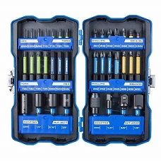 Torsion Control zone - Absorbs extreme torque loads to optimise control whilst preventing fastener cam-out, extending the lifetime of your impact bit. Magnetic Precision Tip - CNC machined tips offer a precise fit to prevent stripping and fastener cam-out, magnetised for ultimate control Impact Performance - PTA is uniquely designed for extreme impact and torque applications. This accessory is manufactured from S2 steel, machined and heat treated Magnetic Lobular Head - Subtle cam in-hex design applies driving force to the flat surface of the fastener, preventing damage to its corners and a reduction in potential round-off Magnetic Quick Release - Quick release coupler provides quick change overs of 25mm driver bits. Simply push the knurled grip forward to eject the bit (Fits all other 1/4 driver bit lengths) Magnetic Extreme C-Clip Coupler - Impact rated for high torque applications, driver bit is retained with a magnet and our EXTREME strength C-Clip. Our coupler has been designed so the driver bit will NOT eject free when in use. NOTE: driver bit is NOT removable by hand, pliers will need to be used to remove the bit. For regular bit changes, use the Kincrome Quick Release Coupler Socket Driver Adaptor - Available in 1/4", 3/8 and 1/2" drive, the socket driver adapts a socket onto your 1/4" impact driver or standard drill driver. NOTE: If using an impact driver, you MUST use an impact rated socket Includes: Bits: 25mm - PH1 x 1, PH2 x 2, PH3 x 1, SQ2, SQ3, BL6.5, T10, T15, T20, T25, HEX2, HEX2.5, HEX3 50mm - PH2 x 3, PH3, SQ2 x 2, SQ3, T20 x 2, T25 x 2, HEX5 x 3 Accessories: 50mm - Magnetic bit coupler extreme 50mm - Magnetic bit coupler quick release 50mm Nutsetter - 1/4", 5/16", 3/8" 50mm Socket Driver - 1/4", 3/8", 1/2"