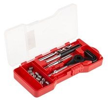 Recoils range of kits contain a selection of Recoils most popular sizes of thread repair kits. They provide you with an all in one workshop solution for when youre not sure what type of thread repair you may need to do next. It is ideal for garages and other workshops where thread repairs are often undertaken. Recoil Thread repair kits are the simple way to repair damaged threads or creating stronger threads in alloy components. Recoil inserts are rolled from high quality stainless steel wire with a diamond shaped cross section, wound to the shape of a spring thread. Once the insert is installed into a tapped hole, it provides a permanent and wear resistant thread in the parent material designed to be stronger than the original thread.