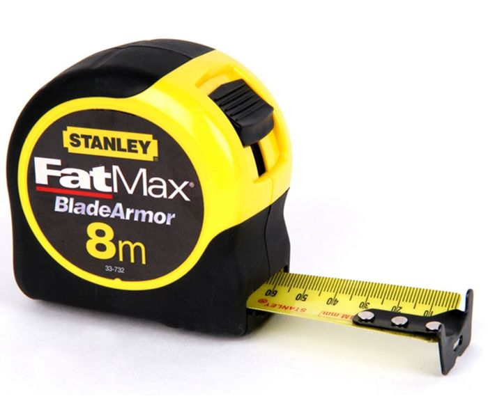 Product Description Built to last, the Stanley 8m Fatmax Tape Measure uses Blade Armor, a patented, industrial thermoplastic coating for maximum durability and reduced blade breakage. Ideal for the industry professional and home DIY enthusiast alike, it has a cushion grip built into the case for a comfortable ,non-slip grip and better impact resistance. Blade Armor coating is a patented industrial thermoplastic coating Blade Armor coating for maximum durability and reduced blade breakage 31.7mm wide blade (25% wider) with 3.3Mtr of standout and easy to read graphics Exclusive cushion grip built into the case for a comfortable non-slip grip and impact resistance Stainless steel wear plate protects case from being cut by blade