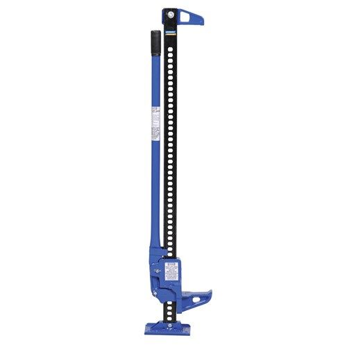 DESCRIPTION Complies with Australian Standard: AS/NZS 2693:2007 Rubber Grip Handle Safety Reverse Latch Large Ribbed Lifting Nose (120mm) Ideal for 4 Wheel Driving, Farm Use, Lifting, Pulling or Winching Capacity: 1050kg Weight: 13kg Measurements: 1240 x 180 x 118mm Height: 42" (1240mm) Lifting Range: 108 - 1040mm Large Base Plate: 180 x 117mm Standard: Complies with Australian Standard: AS/NZS 2693:2007