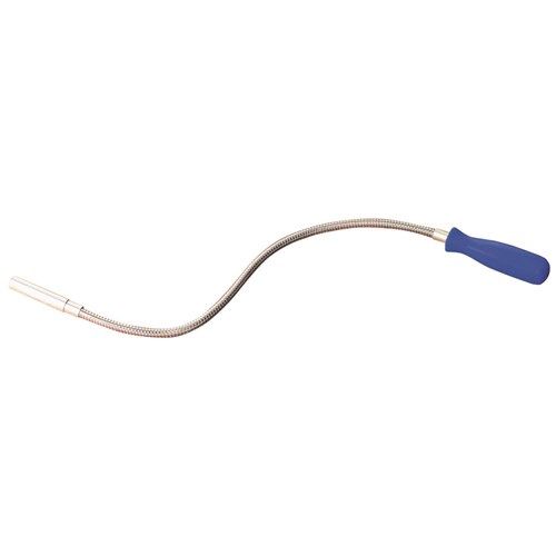 Chrome plated flexible shaft with heavy duty magnetic tip Includes plastic handle Ideal for the retrieval of nuts, screws and other steel objects lost in remote places