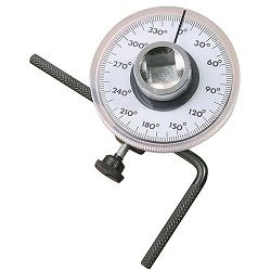 Manufactured from chrome vanadium steel, chrome plated 1/2" Square Drive angular torque gauge with adjustable angle scale and locking L-type arm Allows correct tensioning of fasteners by degrees of torque This tool is required when manufacturers specify a torque setting using a measurement of degrees after the initial torque is set