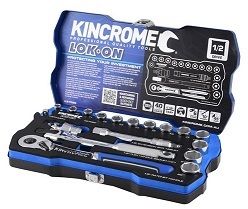 Kincrome LOK-ON Sockets, Sets and Accessories have been engineered beyond world-class benchmarks, exceeding all international torque and lifetime standards. Offering unique patented features such as the LOK-ON Sockets ability to loosen up to 85% rounded/damaged fasteners, the LOK-ON range has been developed with both function and style in mind. Each component within the LOK-ON range includes features above and beyond the markets expectation, setting a new benchmark for the professional quality tool industry. CONTENTS 13 LOK-ON 1/2 Drive Metric Sockets: 8, 10, 11, 12, 13, 14, 15, 16, 17, 18, 19, 21, 22mm 5 Accessories 1/2 Drive: LOK-ON Ratchet Handle 60T LOK-ON Flex Handle 250mm (10") LOK-ON Extension Bar 155mm (6") LOK-ON Universal Joint LOK-ON Adaptor 1/2F X 3/8M