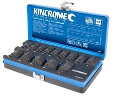 Kincromes range of impact sockets are manufactured from Chrome Molybdenum (Cr-Mo) and feature a black phosphate finish for superior corrosion protection, laser etching for easy drive size identification and Peripheral Drive technology. Peripheral Drive provides greater torque by relocation the load to the flat sides of a fastener, this allows for greater surface area contact and prevents rounding off of fasteners. IMPORTANT: Only Impact Sockets should be used on air or electrically operated power tools. NEVER use silver Chrome Vanadium Steel (Cr-V) Sockets which can shatter and cause personal injury. CONTENTS 14 x 1/2" Drive Standard Impact Sockets 10, 12, 13, 14, 15, 16, 17, 18, 19, 21, 22, 23, 24, 27mm EVA Tray for storage