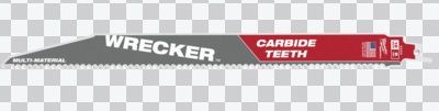 The Milwaukee WRECKER with Carbide Teeth SAWZALL Blades are the most versatile carbide blade on the market. These multi-material SAWZALL blades offer up to 50X more life vs. bi-metal reciprocating saw blades. The MILWAUKEE WRECKER Carbide SAWZALL blades offers a 6 TPI design, which allows for cutting into a wide variety of materials from clean wood to cast iron for quick demolition and remodeling work. The Fang Tip Design allows for faster plunge cuts into wood materials. Milwaukee Carbide Teeth products allow you to cut longer, cut more, and cut faster than other carbide teeth blades on the market.