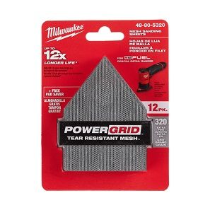 The H&L Net Sandpaper for M12 FUEL Orbital Detail Sander are designed with POWERGRID Tear Resistant Mesh for maximum durability, delivering up to 12x longer life vs. standard sandpaper. Milwaukee Mesh Net Sandpaper use an open weave design to minimize clogging and reduce material build-up for a smooth and flawless finish. The durable nylon backing increases protection against sharp edges, tight corners, and tough material removal applications while utilizing sharp aluminum oxide grain for faster finishing. The reusable mesh sanding sheets are easy to clean for longer life; simply shake, vacuum, blow or rinse to clear away debris. The high-quality hook and loop provides a secure connection and fast grit swaps. Sanding sheets are available in 80 grit - 400 grit for use in wood, metal, and plastics.