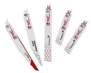 The MILWAUKEE 5 piece Demolition SAWZALL blade set features an assortment of our most popular demolition blades for a broad range of professional applications. MILWAUKEE demolition blades are thicker for maximum durability and taller for straighter cuts. The set features THE AX for cutting nail embedded wood, The WRECKER for multi-material demolition cutting, and THE TORCH for metal cutting.