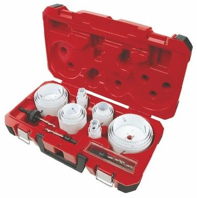 FEATURES Ice Hardened for up to 50% longer life than the competition Optimized tooth form for up to 2X faster cutting Functional slots for faster plug removal Matrix II bi-metal teeth for greater durability Storage space for one (1) 12" extension or two (2) 6" extensions SPECIFICATIONS 22 x Hole Saw Sizes: 19, 22, 25, 29, 32, 35, 38, 44, 51, 54, 57, 64, 67, 76, 83, 86, 92, 95, 105, 108, 114 & 121mm 3 x Arbors: 49-56-7000, 49-56-7010, 49-56-9100 3 x Drill bits: 49-56-8010 1 x Adapter 1 x Spacer Carry Case with space for additional hole saws