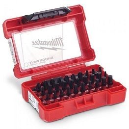 MILWAUKEE SHOCKWAVE IMPACT DUTY Driver Bits are engineered for extreme durability and up to 10x life. Made from proprietary steel and heat treated to control hardness, the SHOCKWAVE IMPACT DUTY Driver Bits feature an innovatively designed geometric shock absorption zone to extend life. The forged tip allows for a secure grip and maximum contact eliminating stripping or slipping. Broadly targeting cordless users, the SHOCKWAVE IMPACT DUTY accessory line is not only ideal for heavy duty impact applications but delivers a full system solution for all the user's drilling and fastening needs. Features MILWAUKEE SHOCKWAVE IMPACT DUTY Driver Bits feature: OPTIMISED SHOCKZONE - Absorbs peak torque and prevents breaking PRECISE FIT MACHINED TIP - Prevents stripping and reduces wobble CUSTOM ALLOY76 Steel - Maximizes resistance to wear and shock Includes 25 mm (1") Insert Screwdriver Bits (x31) Phillips Bits (x3) PH1 PH2 PH3 Pozidrive Bits (x4) PZ1 PZ2 (x2) PZ3 Torx Bits T10 (x2) T15 (x2) T20 (x3) T25 (x2) T30 (x2) T40 (x1) Torx Security Bits TR7 TR8 TR9 TR10 TR15 TR20 TR25 Hex (Internal) Bits 3.0 mm 4.0 mm 5.0 mm 6.0 mm Plastic Storage Case