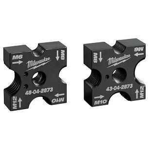 The M6, M8, M10, M12 Threaded Rod Cutting Dies produce clean, burr-free cuts. The superior blade geometry effortlessly cuts through threaded rod, without creating chips or sparks. The four-sided rotatable threaded rod cutter dies allow you to cut all four sizes of threaded rod with the same tool. Size markings are clearly indicated on the all thread cutter dies as well as markings for upper and lower jaw placement. The replacement dies are compatible with our M18 Brushless Threaded Rod Cutter (M18BLTRC-0X). Provides quality, burr-free cuts ready for threading Four Sided Rotatable Cutting Dies Allow You to Cut Four Different Sizes of Threaded Rod with the Same Tool Size Markings on Dies to Correspond with Threaded Rod Size Easy Die Changes Using Allen Key Stored On Tool Specifications: Cutting Capacity: M6, M8, M10, M12