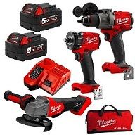 WHAT'S INCLUDED M18 FUEL 13mm Hammer Drill/Driver (Tool Only) M18 FUEL 1/2" Compact Impact Wrench with Friction Ring (Tool Only) M18 FUEL 125mm (5") Angle Grinder with Deadman Paddle Switch (Tool Only) (2) M18 REDLITHIUM-ION 5.0Ah Battery M12 & M18 Rapid Charger