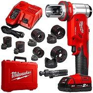 Each product within the MILWAUKEE Knockout System was built upon the principles of reducing the tedious steps of hole making, improving the speed of the process, and limiting the fatigue of the user. The M18 FORCE LOGIC 6 Ton Knockout Tool carries these benefits forward to service applications. Its compact, right angle design delivers the best clearance in tight spaces. The Quick Connect Alignment System delivers easy set-up without the weight of the tool, and speeds up repetitive punching. The EXACT punches and dies are rated for both mild and stainless steel punching. Vivid red cross hairs aid in accurate alignment, and the gripping surface on punches enables faster threading. The M18 FORCE LOGIC 6 Ton Knockout Tool delivers the Easiest Way to Punch! WHAT'S INCLUDED M18 HKP FORCE LOGIC 6 Ton Knockout Tool (1) EXACT 11.1mm (7/16") Draw Stud [49162680] (1) EXACT 19mm (3/4") Draw Stud [49162681] (1) EXACT M16 Knockout Die [4932430913] (1) EXACT M16 Knockout Punch [4932430841] (1) EXACT PG13/M20 Knockout Die [4932430914] (1) EXACT PG13/M20 Knockout Punch [4932430842] (1) EXACT M25 Knockout Die [4932430916] (1) EXACT M25 Knockout Punch [4932430844] (1) EXACT M32 Knockout Die [4932430918] (1) EXACT M32 Knockout Punch [4932430846] (1) EXACT M40 Knockout Die [4932430919] (1) EXACT M40 Knockout Punch [4932430847] (1) EXACT M50 Knockout Die [4932430920] (1) EXACT M50 Knockout Punch [4932430848] (1) EXACT M63 Knockout Die [4932430921] (1) EXACT M63 Knockout Punch [4932430849] (1) Quick Connect Alignment System (1) M18 REDLITHIUM-ION 2.0Ah Compact Battery [M18B2] (1) M18 & M12 Rapid Charger [M12-18FC] Carrying Case