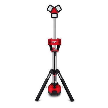 The Milwaukee M18 High Output Stand Area Light/Charger is designed to deliver users a lighting solution that adapts, performs, and survives on the jobsite. The tower light can be set up in seconds, to a maximum height of 2.1 metres and collapses to 1.2 metres for easy transportation and storage. The mast can be extended, increasing the Stand Area Light/Charger's height from 1.2 to 2.1 metres, letting users light up overhead work or minimise shadows when casting shine downward. The multi-directional light head allows users to orient the three independently pivoting light heads to cast light in several directions. With an integrated AC cord , users can plug in the light and charge any M18 REDLITHIUM-ION battery pack, or use the USB port to charge their devices on site, with convenient device storage when charging. For optimised control over lumen output and runtime, the M18 High Output Stand Area Light/Charger has three output settings. Delivering up to 6,000 lumens, the M18 High Output Stand Area Light/Charger illuminates large areas with TRUEVIEW High Definition light. Provides up to 6,000 Lumens of TRUEVIEW High Definition Output Three independent pivoting light heads 3 output modes for managing output or runtime Integrated M18 charging IP34 rated 2.1A USB output for charging small electronic devices Up to 10 hours runtime with M18 REDLITHIUM-ION HIGH OUTPUT 8.0Ah Battery Powered by M18 batteries or AC power Quick mast extension Extendable mast with 2.1 metre maximum extension Protective guard to secure head and lens in storage and transport Specifications: Voltage: 18V/240V Modes: 3 Lumens: Up to 6,000 Runtime: Up to 10 hrs (M18HB8) Height: 2,130 mm (1,220 mm retracted)