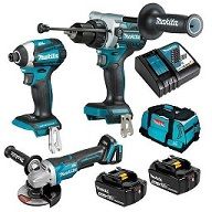 Kit Includes: DHP486Z 18V Brushless Hammer Driver Drill DTD154Z 18V Brushless 3-Stage Impact Driver DGA508Z 18V Brushless 125mm Paddle Switch Angle Grinder 2 x BL1850B 5.0Ah batteries DC18RC Single Port Rapid Charger 199936-9 Tool Carry Bag