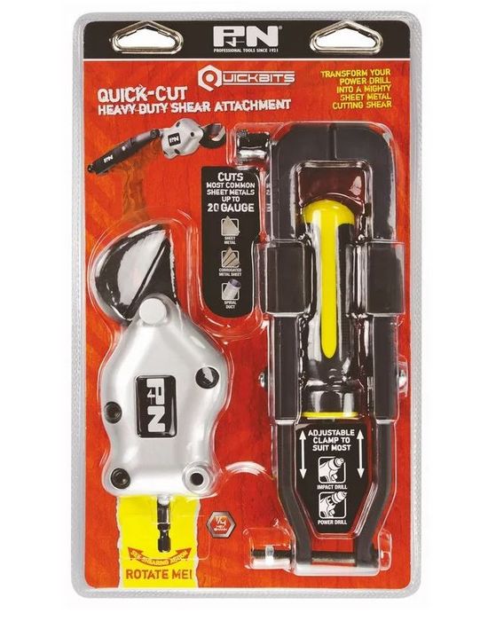 &N Quick-Cut Heavy Duty Shear Attachment Transforms your power drill into a mighty sheet metal cutting shear. ¼ Hex shank