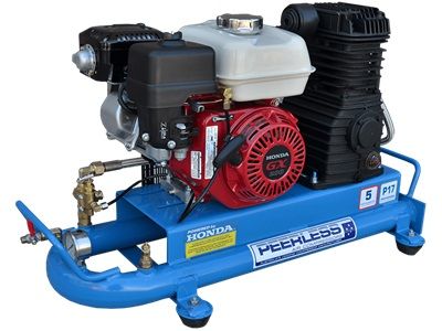 Peerless products unique design 2" Tube Tank compressor is far easier to transport in your vehicle due to it's low centre of gravity. It takes up a minimal amount of space while still offering all the features of a conventional compressor. Electric start optional extra. Please call Peerless for a quote. Electric start engine does not come with battery, leads or provisions for battery. We can manufacture to your design plus there are other standard designs for each model.