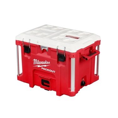 The PACKOUT Storage System is the industry's most durable and versatile storage system. The PACKOUT XL cooler keeps ice for up to 5 days. The PACKOUT XL Cooler has been constructed with impact-resistant polymers for ultimate jobsite durability. This cooler is IP65 rated to withstand harsh environments and jobsite debris. This cooler comes with an integrated bottle opener, interior storage tray, and a food-grade cutting board/divider for maximum versatility on and off the jobsite. The MILWAUKEE PACKOUT Storage System allows you to customise a storage system that easily transports and organises your tools and accessories. Impact Resistant Body - Impact resistant polymers for harsh jobsite conditions Intergrated bottle opener for convenient beverage opening Food-Grade Cutting Board and Divider Interior Storage Tray Drain Plug 5 days Of Ice Retention Volume: 38L