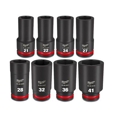 The MILWAUKEE 8 Piece SHOCKWAVE Impact Dut 3/4" Drive Deep Socket Set features the boldest, longest-lasting markings and extreme impact durability in high torque applications. The stamped and ink-filled size markings make it easy to select the right socket every time throughout the life of the socket. Engineered with high strength forged steel for optimised performance in heavy-duty applications, and a non-slip hex geometry prevents fastener rounding. The dual-hole design and ring groove allow for easy socket attachment and removal. All SHOCKWAVE Impact Duty Sockets are backed by a Lifetime Guarantee and meet ASME industry standards. Includes: 8 x Shockwave 3/4" Driver Metric Deep 6 Point Impact Sockets: 21mm, 22mm, 24mm, 27mm, 28mm, 32mm, 36mm, 41mm 1 x Carry Case Features: Optimized for use with 3/4" drive impact wrenches, drivers, ratchets, and adapters Stamped and ink-filled diameter markings for wear resistance 6-Point design made with forged impact steel for durability in high torque applications backed by our Lifetime Guarantee Dual hole design and groove for easier attachment Non-slip hex geometry to prevent socket and fastener rounding Laser-etched part number Specifications: Drive Size: 3/4" Socket Type: Deep System of Management: Metric Warranty: Limited Lifetime Warranty covered by Milwaukee Australia
