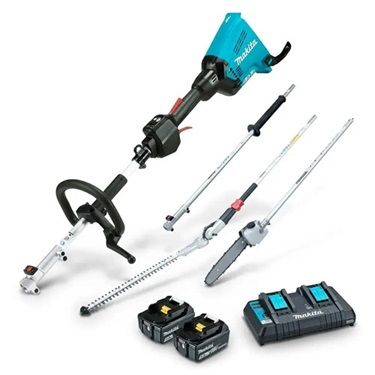 1 x Multi Function Powerhead - DUX60Z 1 x Pole Saw Attachment - EY401MP 1 x Hedge Trimmer Attachment EN401MP 1 x Shaft Extension Attachment - LE400MP 1 x Straight Shaft Line Trimmer Attachment 191N47-0 2 x 5.0Ah Batteries - BL1850B 1 x Dual Port Rapid Charger - DC18RD