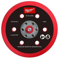 Designed for M12 FUEL Random Orbital Sander (2.5mm) (M12FROS250) Soft Density allows a Fine finish on the paint correction and a clear coat Compatible with Pressure Sensitive Adhesive (PSA) sandpaper 6-Hole configuration backing pad allows for dust collection when the vacuum is attached to the sander Specifications Style: Pressure Sensitive Adhesive (PSA) Density: Firm Colour: Red Backing Pad Diameter: 150mm Backing Pad Thread: 5/16"-24 Optimised Compatiablitly: 5mm (3/16") - M12FROS250 Dust Extraction Compatible: 6 Hole Configuration Material Composition: Polyurethane
