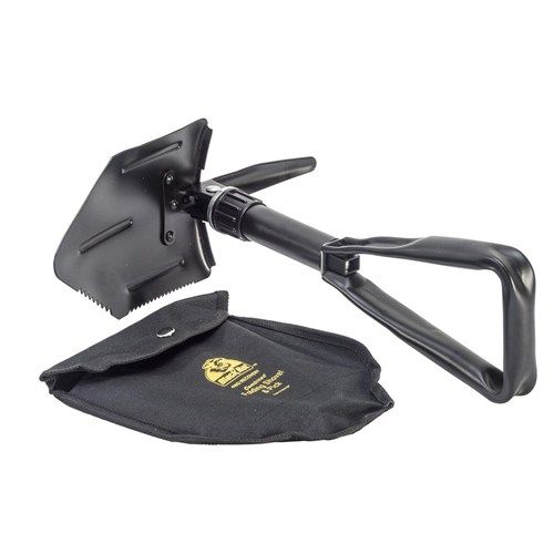 DESCRIPTION This compact, light weight shovel is made from steel for durability with a serrated blade for tough jobs. It also has a knurled collar to easily secure the blades in position. It comes with a carry pouch and measures 425mm x 152mm in folded position. Weight 1.1 kg UOM Each Pack Qty 20